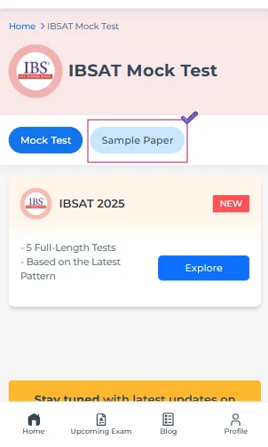 - Soon, a new page dedicated to the IBSAT study materials will open up, and you need to tap on the ‘Sample Paper’ button.