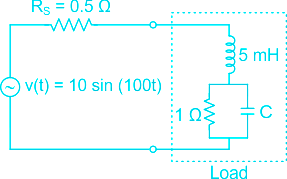 In the circuit shown below, the value of the capacitor C required for maximum power to be transferred to the load is