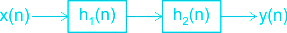 A cascade system having the impulse response \({{\rm{h}}_1}\left( {\rm{n}} \right) = \left\{ {\begin{array}{*{20}{l}}{1, - 1}\\ \uparrow \end{array}} \right\}\) and \({{\rm{h}}_2}\left( {\rm{n}} \right) = \left\{ {\begin{array}{*{20}{l}}{1,{\rm{\;}}1}\\ \uparrow \end{array}} \right\}\) is shown in the figure below, where symbol ↑ denotes the time origin.