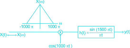 The output y(t) of the following system is to be sampled, so as to reconstruct it from its samples uniquely. The required minimum sampling rate is
