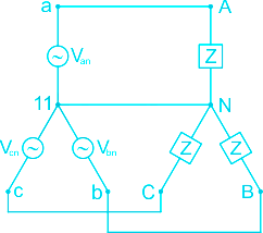 For the star connected 3-phase circuit shown in the figure below, the line-line voltage is 208 V rms and the total power absorbed by the load is 432 W at a power factor of 0.6 leading.