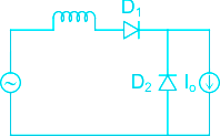 In the circuit shown, the diodes are ideal, the inductance is small and I0 ≠ 0 . Which one of the following statements is true?