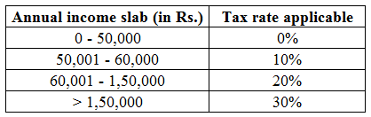 A country follows a progressive taxation system under which the income tax rate applicable varies for different slabs of income. Total tax is computed by calculating the tax for each slab and adding them up. The rates applicable are as follows: