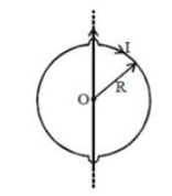A circular conducting loop of radius R carries a current I. Another straight infinite conductor carrying current I passes through the diameter of this loop as shown in the figure. The magnitude of force exerted by the straight conductor on the loop is :-