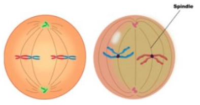 * Spindle fibres attach to the chromosomes.
