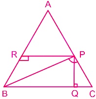 दी गई आकृति में ΔABC एक समबाहु त्रिभुज है। BP ⊥ AC और PR ⊥ AB, PQ ⊥ BC है। ΔPRB और ΔPQC के क्षेत्रफल का अनुपात क्या है?