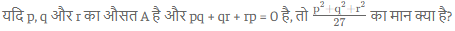 If the average of p, q and r is A and pq + qr + rp = 0, then the value of