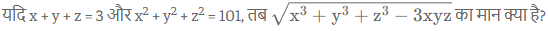 If x + y + z = 3 and x 2+ y 2+ z 2= 101, then what is the value of