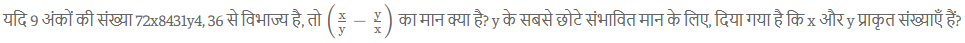 यदि एक 9-अंकीय संख्या 32x4114y2, 88 से विभाज्य है, तब y के न्यूनतम संभव मान के लिए (4x – y) का मान क्या होगा?