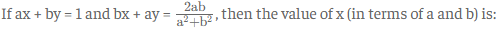 a और b, समीकरण px2 + qx + r = 0 (जहाँ p, q, r सभी धनात्मक हैं) के भिन्न वास्तविक मूल हैं। निम्नलिखित में से कौन-सा एक सही है?