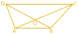 दिए गए चित्र में भुजाएँ AB एवं CD समान्तर हैं, साथ ही माना त्रिभुज OAD का क्षेत्रफल α है एवं त्रिभुज OBC का क्षेत्रफल β है, तो सत्य कथन है