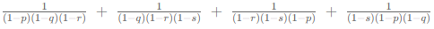 यदि p + q + 1 = 5 – (r + s) है, तो