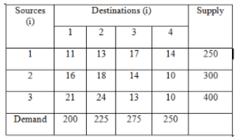 In a transportation problem given below in table, the cell contains the transportation cost. The transportation cost is