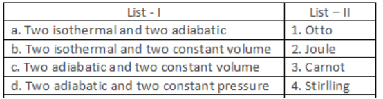 Match List I (Details of process of the cycle) with List II (Name of the cycle) and select correct answer using the codes given below the lists: