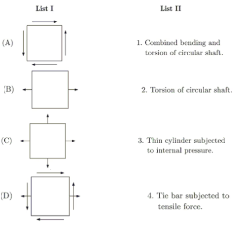 Match List I (State of stress) with List II (Kind of loading) and select the correct answer using the codes given below the lists: