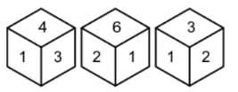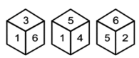 एक पासे की विभिन्न स्थितियां नीचे दिखाई गई हैं। संख्या 6 के विपरीत फलक पर कौन सी संख्या अंकित है?