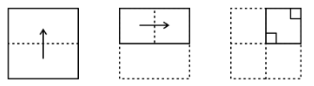 कागज़ के एक टुकड़े को मोड़ने का क्रम और जिस तरह से मुड़े हुए कागज को काटा गया है, उसे निम्नलिखित आकृतियों में दिखाया गया है। खोलने पर यह कागज़ कैसा दिखेगा?