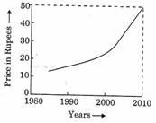 Year-wise variation of the price of a certain commodity is shown in the following graph: