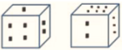 Two positions of a dice are shown below. When there are five dots at the top, how many dots will be at the bottom?