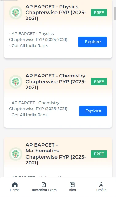 - Clicking on that button will show you an ‘Explore’ button for AP EAMCET Chemistry chapter-wise PYQs 2025-2021.