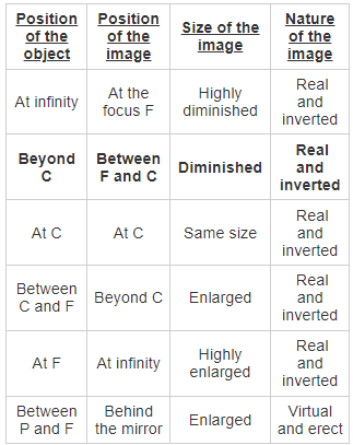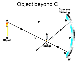 What is the nature of the image formed due to concave mirror when object is placed beyond centre of curvature ?