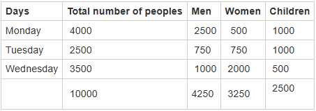 Then, the number of men visited on Wednesday is = 4250- (2500+750)