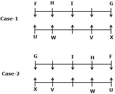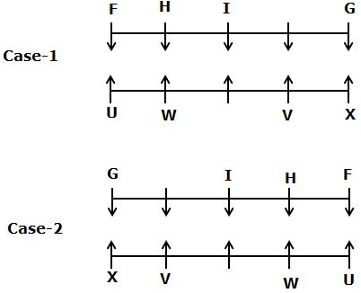 - The number of persons sitting between U and X is two more than the number of persons sitting between F and I.
