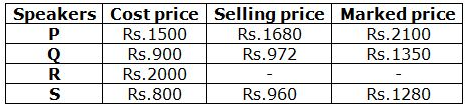 The profit percentage of speaker P = Y% = {(1680 – 1500)/1500} * 100 = (180/1500) * 100 = 12%
