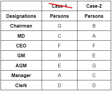 From the above conditions, case-1 gets eliminated because at least three persons are designated between B and D, which is not satisfied.