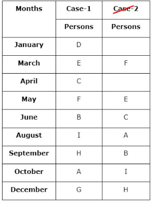 Nine persons - A, B, C, D, E, F, G, H and I were born in nine different months viz., January, March, April, May, June, August, September, October and December of the same year. Only one person was born in each month.