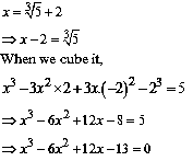 Can be expressed as x2 - (sum of the roots) x + (product of the roots) = 0