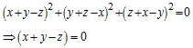 If (x + y - z)2 + (y + z - x)2 + (z + x - y)2 = 0, then the value of x + y - z is?