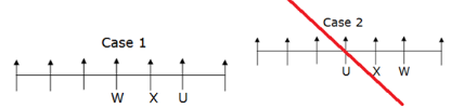 U sits on the immediate left of V. This is not possible in case 2. So case 2 dropped and takes case 1.