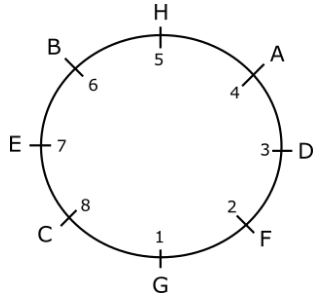 Let us number the positions from 1 to 8 around the circle as shown in the figure.