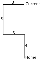 Mohit starts from his home and heads north. He travels for 4 km and then takes a left turn. He walks for another 3 km and then takes a right turn. He walks for 5 km and then takes a right turn. He walks for another 3 km before coming to a stop. What is the shortest distance between Mohit’s current position and his home?