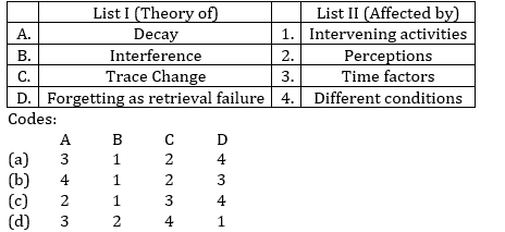 Match List I with List II and select the correct answer using the codes given below the lists.