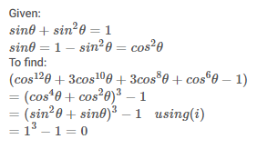If sinθ + sin2 θ = 1, , then what is the value of (cos12θ + 3cos10\thet3cos8θ + cos6θ − 1) ?