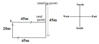 Sunita Walks 45 metres towards south. Then turns right and walk another 45 metres. Then turn right and walks for 20 metres to reach point L. She then again turns to her right and walks for 45 metres. How far (in metres) is she from the starting point?