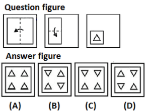 A piece of paper is folded and punched as shown below in the question figures. From the given answer figures, indicate how it will appear when opened?