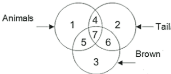 As per the given Venn diagram, number 5 represents those brown animals which do not have tail.