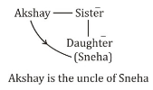 Poonam told Akshay that "Yesterday she defeated Akshay's only sister's daughter Sneha in a school Taekwondo competition." How is Akshay related to Sneha?