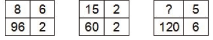 8 × 6 × 2 = 96 15 × 2 × 2 = 60 4 × 5 × 6 = 120