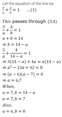 Find the equation of the line which passes through the point (3,4) and the sum of its intercepts on the axes is 14.