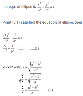 An ellipse whose axes are the axes of coordinates and which passes through the point (3, 1) and eccentricity is √2/5 . Then find the equation of ellipse.