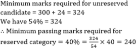 In an examination the minimum passing marks for reserved and unreserved category is 40% and 54% respectively. A candidate of unreserved category got 300 marks and failed by 24 marks. What is the minimum passing markfor reserved category?