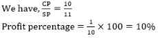 The ratio of the cost price and selling price of an item is 10: 11, and then percentage profit will be