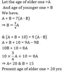 The sum of present ages of A and B is 7 times the difference of their ages. 5 years hence, their total ages will be 9 times the difference of their ages. What is the present age of elder one (in years)?