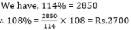 A shopkeeper earns a profit of 14% on selling a cycle for Rs 2850. If the profit is kept as 8% then what will be the selling price?