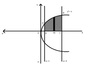 Find the area of the region bounded by the curve y2 = x and the lines x = 1, x = 4 and the x-axis.