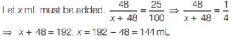 How much quantity of water must be added to 48 mL of alcohol to make a solution that contains 25% alcohol?